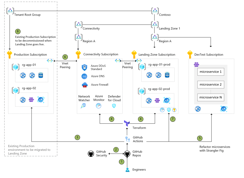 - When all of the applications in existing landing zone is migrated to the new landing zone, the old subscription can be decommissioned.